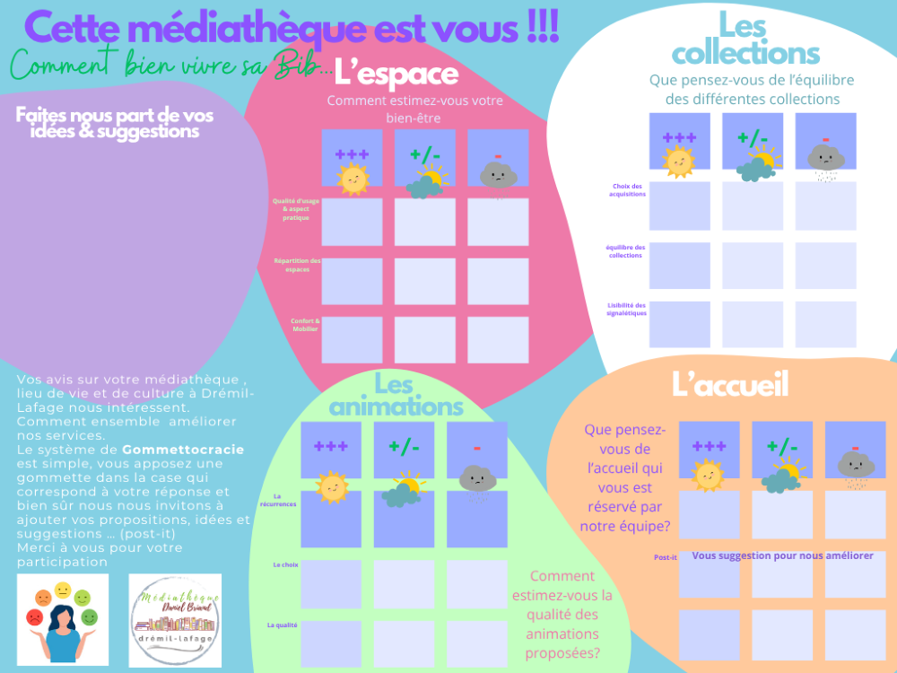 C'est simple, des gommettes et des post-it, pour nous faire part de vos avis, vos désirs et créer ensemble nos projets futurs